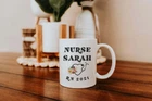 Personalized Nurse Mug Rn Gifts For Women Cute Nurse Gifts Nurse Gift For Her Product Details.. This high quality 11oz. ceramic white mug has a premium hard coat that provides crisp and vibrant color reproduction sure to last for years. Perfect for all hot & cold beverages. The highest quality printing possible is used. It will never fade no matter how many times you wash it. Material: 100% Ceramic. Print both sides. Dishwasher and Microwave Safe. High Gloss + Premium White Finish. Printed in the U.S.A. Personalized & Custom. We support personalized and custom mug to add custom, when placing an order, you can add notes to the "order note" in shipping address section. Also you can contact us directly via message. Shipping Info. Ready to ship in 1 to 2 business days, All products are made-to-order and proudly printed in the United States. Shipped by USPS and DHL, You will receive your order in 5-7 days. Replace & Refund. All products are defective during shipping broken, chipped will be replaced free of charge. You are not satisfied with the product, we will refund 100% money to you. If any other issues arise, please do not hesitate to message, we would be more than happy to assist you.
