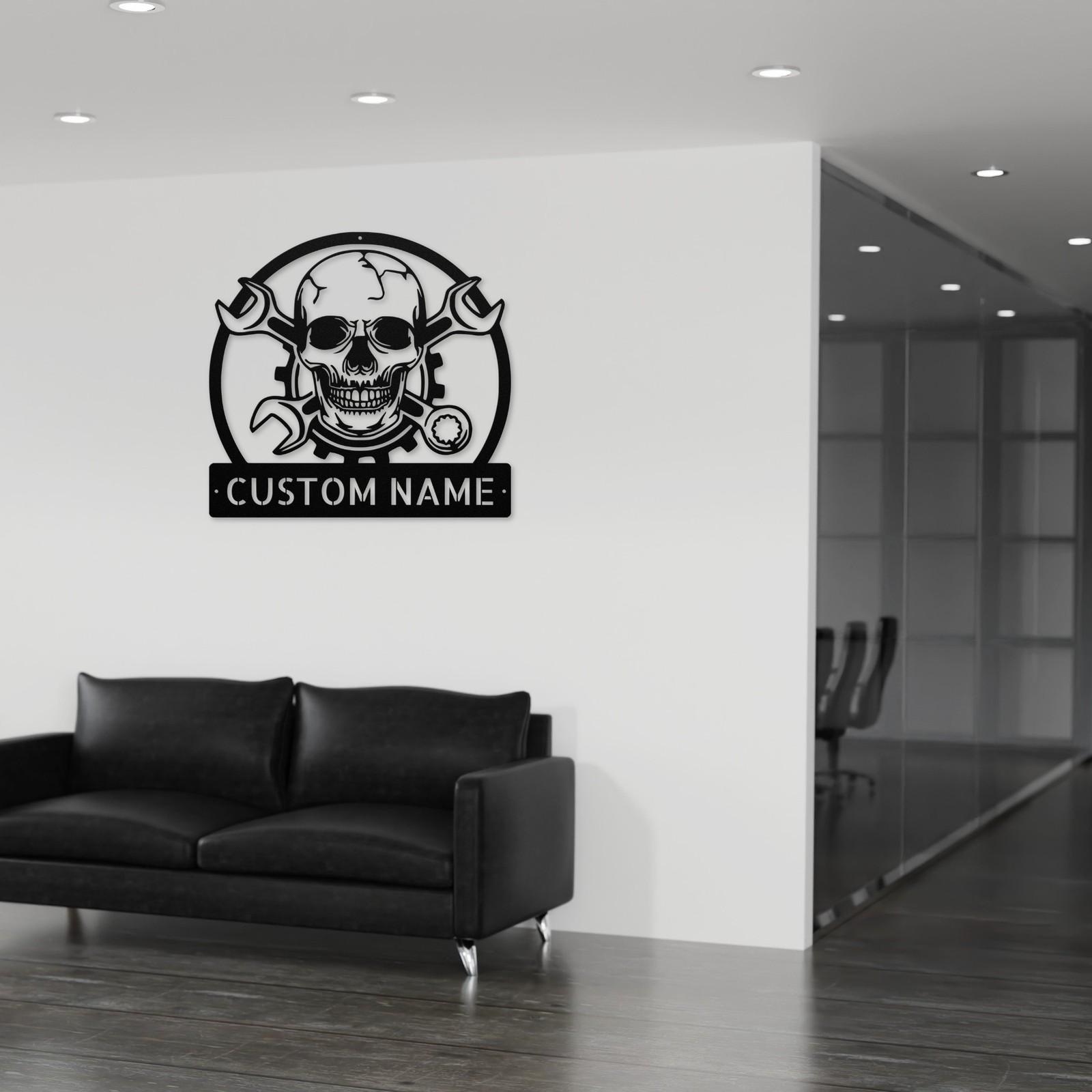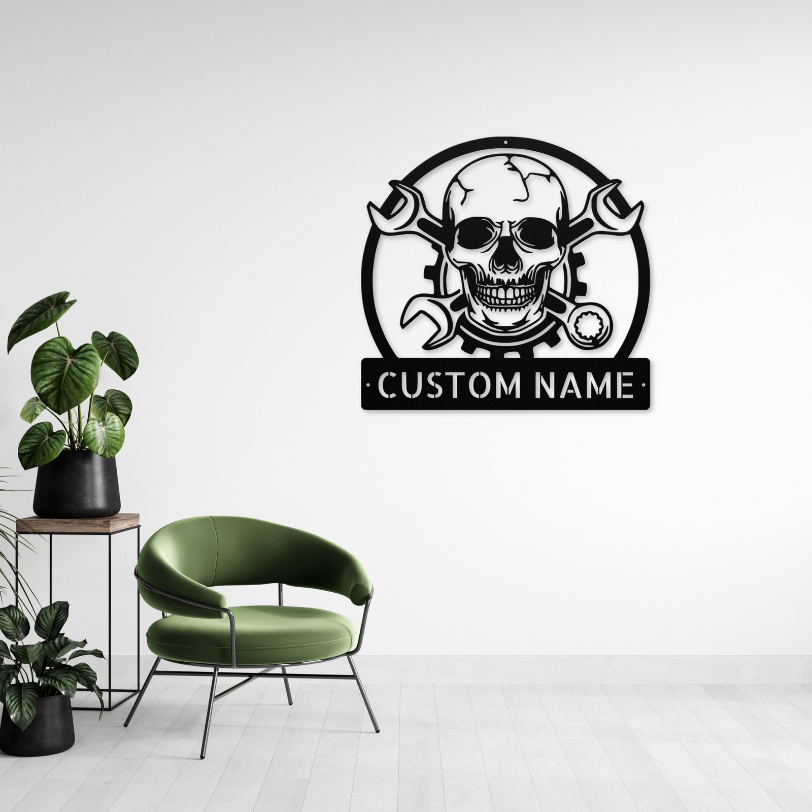Product Description Add a unique touch to your space with our Personalized Skull Mechanic Metal Sign . Made from 16 gauge high-quality metal , this sign is not only striking but also built to last. With a powder coating , it is dust, weather, and water-resistant , making it perfect for indoor or outdoor use. This sign makes a great gift for Christmas, birthdays, or any special occasion. Itโs perfect for anyone who loves mechanics, skull designs, or simply wants to add a bit of personality to their home or office. Key Features: Durable Material: Crafted from 16 gauge high-quality metal for long-lasting use. Weather Resistant: The powder coating ensures it withstands dust and rain. Customizable: Personalize it to make it truly unique for yourself or as a gift. Versatile Decor: Ideal for your garage, man cave, office, or anywhere you want to stand out. Whether youโre treating yourself or surprising a loved one, our Personalized Skull Mechanic Metal Sign is sure to impress. Get yours today and bring a bold statement to your decor! Service and Color Choice My metal signs are designed to be personalized just for you, making them the perfect addition to any space! The default color is Black , but I also offer a variety of beautiful options including Copper, Gold, White, and Silver . After placing your order, simply contact me with your preferred color choice, and I'll ensure your sign is exactly how you envision it. Letโs create something special together! ๐ How Metal Signs Are Measured Metal signs are measured from the widest point to the opposite widest point of the design. The listed size (8โ, 10โ, 12โ, 18โ, 24โ, 30โ, 36โ, etc.) always refers to the longest edge of the artwork, not the height only and not the width only. Because every design has its own shape and proportions, the other dimension (height or width) will adjust automatically . ๐ Example (30-Inch Size) When selecting a 30-inch sign , the longest side of the design will measure 30 inches . If the design is wider than it is tall: Width = 30 inches Height adjusts proportionally (often around 18โ22 inches depending on the design) If the design is taller than it is wide: Height = 30 inches Width adjusts proportionally This ensures the sign keeps its correct proportions and the original shape, no matter which size is selected. ๐จ Custom Designs & Logos Welcome Have a special idea in mind? I can make it happen! Whether you need a business logo , family emblem , pet silhouette , or a one-of-a-kind design , I can create it from scratch and turn it into a high-quality metal sign. You can send your concept, sketch, or photo, and Iโll handle the custom design, editing, and production from start to finish. Your vision becomes real metal artwork made exactly the way you want it. โจ Custom Any Design: If you have a special idea in mind, I can turn it into a metal sign, just message me! ๐ฆ Ordering & Gift-Ready Each sign is crafted to order with great care and attention to detail. Your piece arrives ready to hang , making it easy to display or give as a thoughtful gift. Whether it's for your home or for someone special, every sign is made to impress and last for years. ๐ Your support means the world to me and my family. Thank you for helping keep this small art business growing. ๐ Production & Shipping Every sign is made to order with a fast turnaround time. Production Time: 1โ2 business days Free Shipping: UPS Ground (estimated 2โ5 business days ) Expedited Shipping: FedEx 2-Day Delivery available at checkout Shipping Location: All orders ship from Indiana, USA Each order is packed securely to ensure your metal sign arrives safely and ready to display.