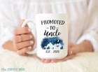 Personalized Uncle Mug Promoted To Uncle Pregnancy Reveal New Uncle Gift New Product Details.. This high quality 11oz. ceramic white mug has a premium hard coat that provides crisp and vibrant color reproduction sure to last for years. Perfect for all hot & cold beverages. The highest quality printing possible is used. It will never fade no matter how many times you wash it. Material: 100% Ceramic. Print both sides. Dishwasher and Microwave Safe. High Gloss + Premium White Finish. Printed in the U.S.A. Personalized & Custom. We support personalized and custom mug to add custom, when placing an order, you can add notes to the "order note" in shipping address section. Also you can contact us directly via message. Shipping Info. Ready to ship in 1 to 2 business days, All products are made-to-order and proudly printed in the United States. Shipped by USPS and DHL, You will receive your order in 5-7 days. Replace & Refund. All products are defective during shipping broken, chipped will be replaced free of charge. You are not satisfied with the product, we will refund 100% money to you. If any other issues arise, please do not hesitate to message, we would be more than happy to assist you.