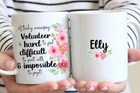 Personalized Volunteer Gift For Women Volunteer Mug Appreciation Gift Thank You Product Details.. This high quality 11oz. ceramic white mug has a premium hard coat that provides crisp and vibrant color reproduction sure to last for years. Perfect for all hot & cold beverages. The highest quality printing possible is used. It will never fade no matter how many times you wash it. Material: 100% Ceramic. Print both sides. Dishwasher and Microwave Safe. High Gloss + Premium White Finish. Printed in the U.S.A. Personalized & Custom. We support personalized and custom mug to add custom, when placing an order, you can add notes to the "order note" in shipping address section. Also you can contact us directly via message. Shipping Info. Ready to ship in 1 to 2 business days, All products are made-to-order and proudly printed in the United States. Shipped by USPS and DHL, You will receive your order in 5-7 days. Replace & Refund. All products are defective during shipping broken, chipped will be replaced free of charge. You are not satisfied with the product, we will refund 100% money to you. If any other issues arise, please do not hesitate to message, we would be more than happy to assist you.