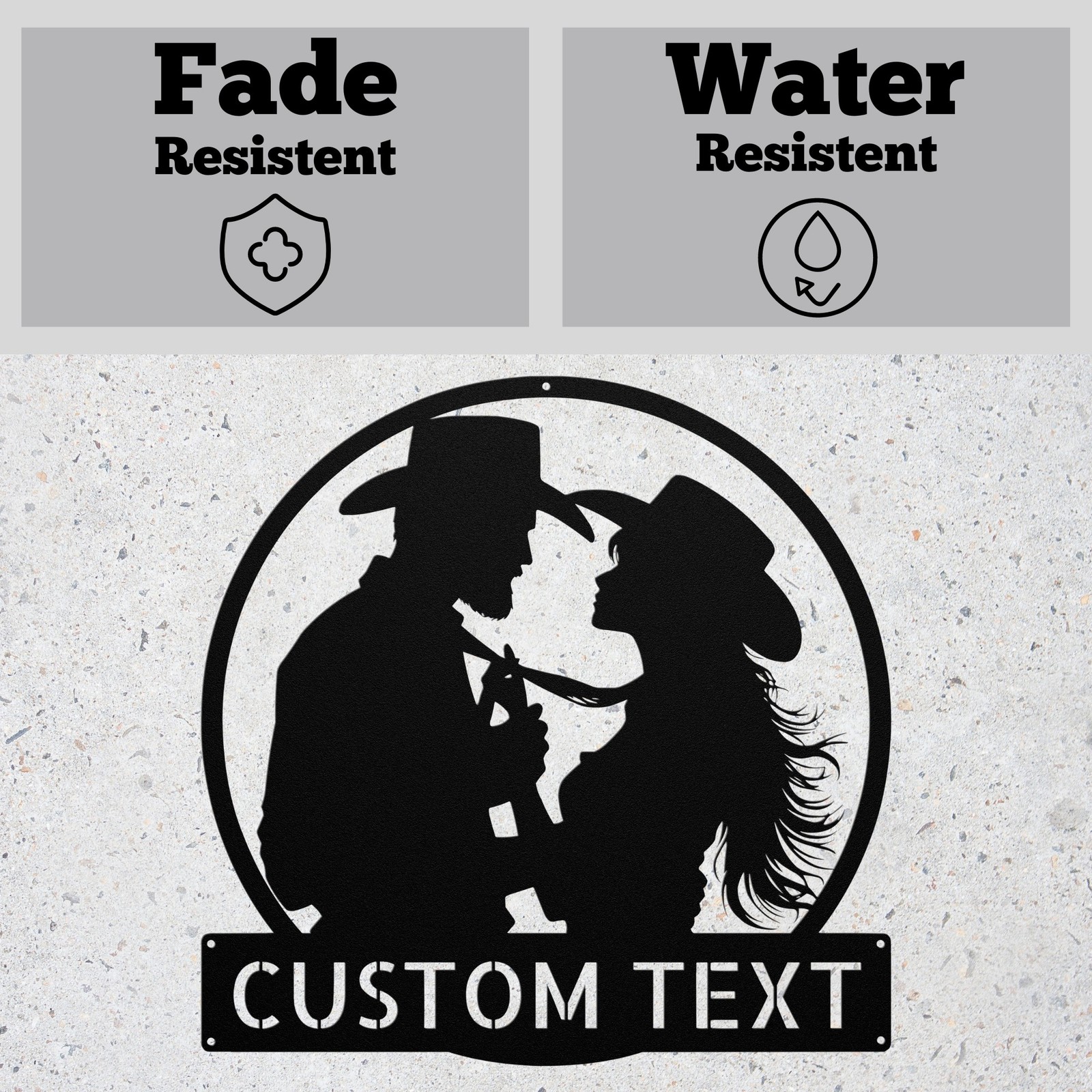 Product Description Transform your space with this stunning Personalized Western Couple Metal Sign . Made from high-quality 16 gauge metal, this rustic decor piece is perfect for adding a unique touch to your home or office. Its durable powder coating ensures it’s resistant to dust, weather, and water, making it suitable for both indoor and outdoor use. Whether you’re looking for a thoughtful gift for Christmas, a birthday, or any special occasion, this personalized sign is sure to impress. It’s a wonderful way to celebrate love and companionship, or you can keep it for yourself as a charming addition to your decor. Key Features: Customizable Design : Personalize with names or initials for a unique touch. High-Quality Material : Made from durable 16 gauge metal for lasting beauty. Weather Resistant : Powder-coated finish protects against dust, rain, and sun. Versatile Decor : Ideal for both indoor and outdoor display. Perfect Gift : Great for weddings, anniversaries, holidays, or just because! Bring a touch of western charm to your life with this beautiful metal sign. It’s more than just decor; it’s a piece of art that celebrates special moments and makes any space feel like home. Order yours today! Service and Color Choice My metal signs are designed to be personalized just for you, making them the perfect addition to any space! The default color is Black , but I also offer a variety of beautiful options including Copper, Gold, White, and Silver . After placing your order, simply contact me with your preferred color choice, and I'll ensure your sign is exactly how you envision it. Let’s create something special together! 📏 How Metal Signs Are Measured Metal signs are measured from the widest point to the opposite widest point of the design. The listed size (8”, 10”, 12”, 18”, 24”, 30”, 36”, etc.) always refers to the longest edge of the artwork, not the height only and not the width only. Because every design has its own shape and proportions, the other dimension (height or width) will adjust automatically . 🛠 Example (30-Inch Size) When selecting a 30-inch sign , the longest side of the design will measure 30 inches . If the design is wider than it is tall: Width = 30 inches Height adjusts proportionally (often around 18–22 inches depending on the design) If the design is taller than it is wide: Height = 30 inches Width adjusts proportionally This ensures the sign keeps its correct proportions and the original shape, no matter which size is selected. 🎨 Custom Designs & Logos Welcome Have a special idea in mind? I can make it happen! Whether you need a business logo , family emblem , pet silhouette , or a one-of-a-kind design , I can create it from scratch and turn it into a high-quality metal sign. You can send your concept, sketch, or photo, and I’ll handle the custom design, editing, and production from start to finish. Your vision becomes real metal artwork made exactly the way you want it. ✨ Custom Any Design: If you have a special idea in mind, I can turn it into a metal sign, just message me! 📦 Ordering & Gift-Ready Each sign is crafted to order with great care and attention to detail. Your piece arrives ready to hang , making it easy to display or give as a thoughtful gift. Whether it's for your home or for someone special, every sign is made to impress and last for years. 💖 Your support means the world to me and my family. Thank you for helping keep this small art business growing. 🚚 Production & Shipping Every sign is made to order with a fast turnaround time. Production Time: 1–2 business days Free Shipping: UPS Ground (estimated 2–5 business days ) Expedited Shipping: FedEx 2-Day Delivery available at checkout Shipping Location: All orders ship from Indiana, USA Each order is packed securely to ensure your metal sign arrives safely and ready to display.