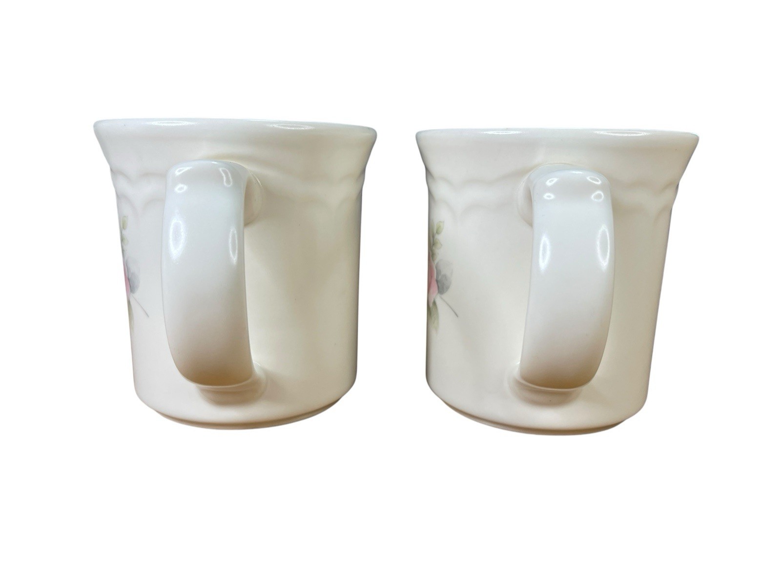 Add a touch of elegance to your morning routine with this set of two Pfaltzgraff tea rose tall coffee tea cups. The beige color and rose pattern on the mugs make them perfect for any occasion. Whether you're enjoying a hot cup of coffee or a warm cup of tea, these mugs will keep your drink at the perfect temperature. The set includes both a coffee mug and a tea cup, making it a great addition to any kitchen. The mugs are made of high-quality glassware and are perfect for daily use.