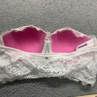 Vintage: NO Size: L Product Line: Lightly Lined Opacity: Opaque Style: Longline Bra Garment Care: Hand Wash Only Material: Nylon Blend Strap Type: Strapless Department: Women Type: Bra Closure: Hook & Eye Underwire Type: Underwired Brand: Pink Color: White Band Size: L Pattern: Solid Cup Size: L Season: Spring, Summer, Fall, Winter Fabric Type: Woven