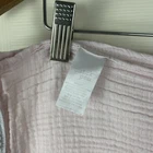 Chick Pea Solid Pink Baby Swaddle Blanket Muslin Gray Pom Pom Edge Trim Measures approx. 29" x 39" Condition: Pre-owned. Small hole. Small stain. No other issues noted. Smoke free home. B16