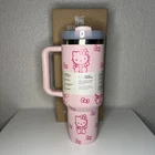 Brand new pink hello kitty engraved 40oz Stanley tumbler A great gift for any hello kitty lover This pink Hello Kitty engraved Stanley tumbler is the perfect addition to any kitchen or bar. With a 40 oz capacity, it keeps your hot or cold beverages at the perfect temperature for up to 7 and 11 hours, respectively. The tumbler is made of durable stainless steel and comes with a lid and straw, making it easy to sip on your favorite drink.