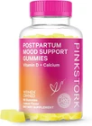Pink Stork Postpartum Mood Support Vitamin D Gummies - Natural Hormone Balance for Women with Postnatal Vitamin D3 and Calcium - Postpartum Essentials for Breastfeeding - 60 Lemon Drop Gummies
