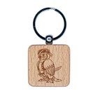 Pirate Parrot with Sword Engraved Wood Square Keychain Tag Charm