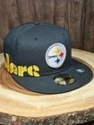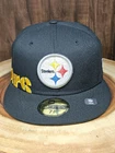 Represent the city of Pittsburgh with this Pittsburgh Steelers New Era 59Fifty Fitted Hat Cap. The cap features a wrap-around design with the iconic Steel City logo. It is made with high-quality materials to ensure durability and comfort. Perfect for any fan of the team, this hat is a must-have accessory for game day or everyday wear. The fitted design ensures a comfortable and secure fit for any head size.
