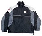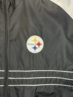 Show your support for the Pittsburgh Steelers with this stylish and functional jacket. Made from lightweight, wind-resistant softshell fabric, this mid-length anorak is perfect for casual occasions. The jacket features a full zip closure, embroidered logo, and pockets for your convenience. Crafted from polyester, this black jacket is machine washable and easy to care for. The jacket is available in size L and has a regular fit. The vintage-inspired design and retro sports theme make this jacket a must-have for any American Football fan. Get yours today from Dunbrooke. Has a couple marks. Check pictures for condition and measurements for size.