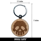 Pixel Digital Skull Engraved Wood Round Keychain Tag Charm