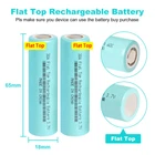 Plastic Battery Storage Case Holder of 2Pcs 3.7v Rechargeable Batteries Flat Top Features: 1. 【Durable Rechargeable】 Real 20A 2600mAh Lithium Li-ion Rechargeable Batteries large capacity, which can be widely used for electronic devices, such as LED flashlights, emergency lights, portable devices, headlights, toys, remote controls, etc.Recharge up to 1050 cycles - longer battery life than alkaline batteries, No need to buy batteries frequently. 2. 【Wide Compatibility】 2600mAh 20A rechargeable flat top battery, compatible with headlamp, doorbells, cameras, small fans, etc. Helps you wake up your devices quickly. 3. Heavy safety protection, overcurrent protection/overvoltage protection/short circuit protection/over -temperature protection/anti -interference protection/anti -static protection protection. 4. The 2600mAh Rechargeable Batteries adopts the A -product battery core, the capacity is sufficient, the internal resistance is low, which can be discharged in large current. 5. The 2600mAh 20A Rechargeable Batteries performance is stable, the life of the circulation is long, the battery life is long, the smart core charger, the built -in overheating protection, and the functional stability is excellent. 6. 【After Sales Service】 If there are any problem with the product, please contact us in time. We will provide you with professional solution, satisfactory service in 24 hours. Product Specification: Specification: 2600mah Battery model: 3.7v Li-ion Rechargeable Batteries Product color: Pink Voltage: 3.7V Size: Dia Max 18.40mm x Height 65.00mm Product capacity: 2600mah Chemical Type: Lithium Ion Battery characteristics: Long battery life, small style, large capacity Scope of application: suitable for electronic products such as flashlights, remote control toys, wireless microphones Material: Li-ion Battery Rechargeable times: Up to 1000 times Package included: 4x 20A 3.7v Li-ion Rechargeable Batteries 2600mAh 2x Plastic Battery Storage Case Holders Warm Tips: 1. Before use, please remove the plastic packaging film of the battery. 2. Please check the "+" and "—" directions of the battery before you charge the battery. 3. Do not put the product into fire, short circuit, dissassemble and extrude. 4. Do not mix fresh batteries with used batteries, which may explode or leak, causing personal injury. 5. Please take out the battery if you won't use for a long time to avoid battery leakage. 7. Note:Please find us in first time when you find the parcel Broken/Scratch/Function Error/Miss Parts/Unwork/has not arrived etc, we always have more details and solutions, even duty for your order. On Jan 6, 2025 at 18:10:32 PST, seller added the following information: