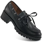 Sole material Lug-sole Outer material Faux Leather Closure type Lace-Up About this item Classic Design: These Oxford shoes for women feature classic lacing and a clean plain toe design for a minimalist business look. The special side buckle details add just the right touch of casual style. Leather Oxford Shoes: Crafted from premium leather for lasting durability. Hand-stitching ensures even, tight stitching throughout with smooth-finished leather edges of these women's Oxfords. Soft and Comfortable: Soft leather lining feels comfortable even barefoot in these womens Oxfords. The cushioned memory foam insole keeps your feet comfortable all day long. Lug Sole: The 1.96-inch lug sole features deep tread patterns for superior traction, while the thickness provides shock absorption. Maintains a dressy business shoes shape with added casual appeal. Formal and Casual: These platform heeled loafers for women are perfect for business, work and office wear. Yet stylish enough for weekend getaways and casual occasions.