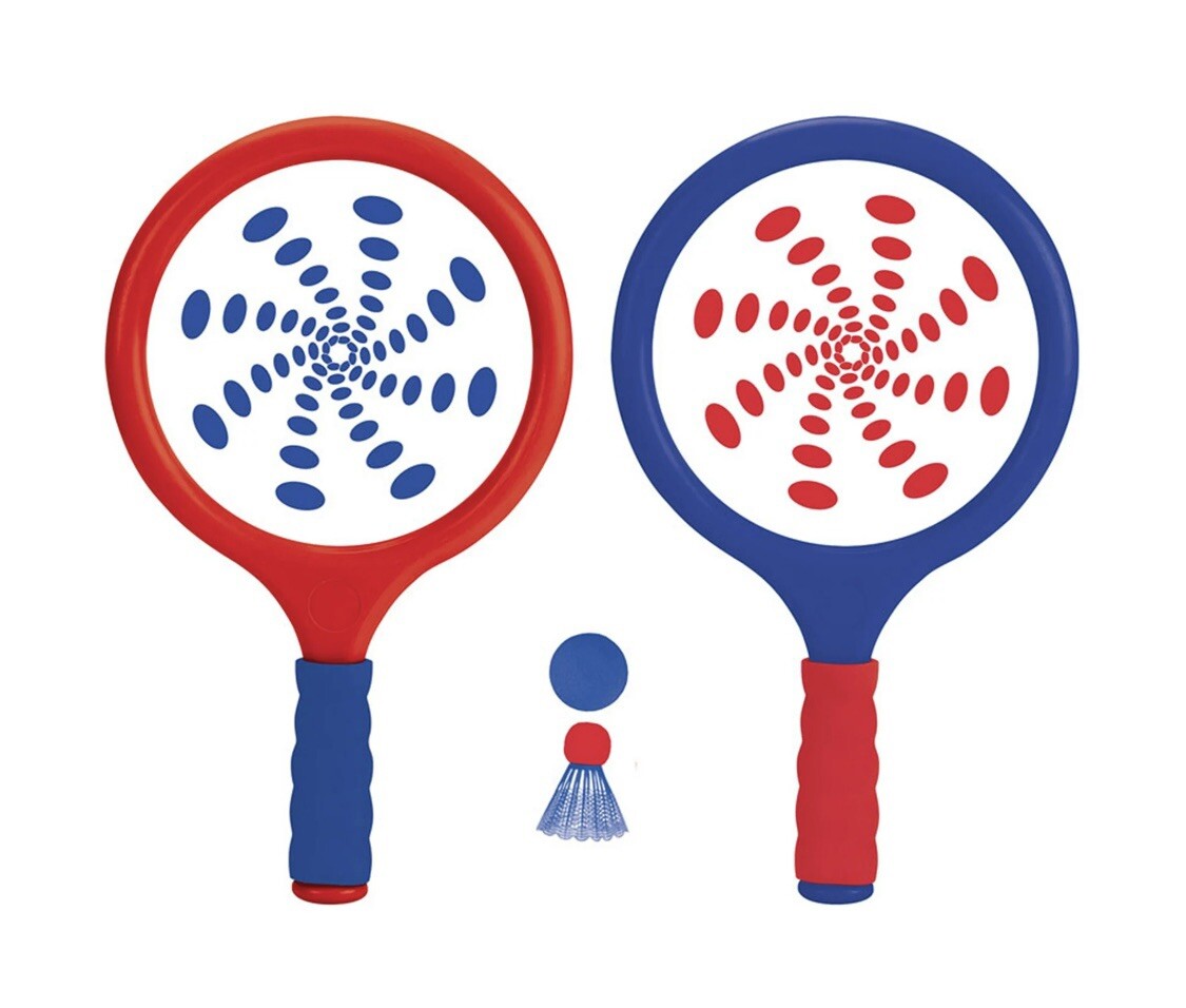 Get up and get moving with the Play Day Boom Racket Game Set! Featuring two paddles that make that satisfying boom sound every time they strike. This play set features two games in one. The included rubber ball lets two people take up a paddle each and start a healthy game of racquetball on almost any hard flat-surfaced area, indoors or outdoors for lots of fun aerobic exercise. Plus, the included birdie/shuttlecock lets you play your own version of badminton with or without a net (net not included). Includes one orange racket, one green racket, one rubber ball and one shuttlecock. Unisex toy recommended for children ages 3+. This set includes two boom rackets, one ball, and one birdie/shuttlecock Excellent for healthy play and good aerobic activity Makes a great gift for Christmas, birthdays, Hanukkah, and more Perfect summer, sunny day activity! Great for the beach or a picnic! Designed for use by children ages 3 years and up One blue racket and one red racket