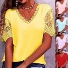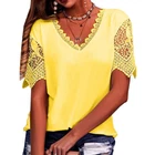 Specifications: 100% Brand new and high quality. Size:S,M,L,XL,XXL,3XL,4XL,5XL Color: white,light blue,light purple,pink,yellow,red Material: Polyester Sleeve length:short sleeve Neckline:v neck Pattern:solid color Season:summer Note: 1.Due to the light and screen difference, the item's color may be slightly different from the pictures. Please understand. 2.Please allow 2-3% error due to manual measurement.Please make sure you don’t mind before you mid. 3.Size doesn’t fit all.Please carefully check size chart and select the size based on your real size. Wash before wear Cold gentle machine wash Do not bleach Do not tumble dry Drip dry Package:1 pcs t shirt
