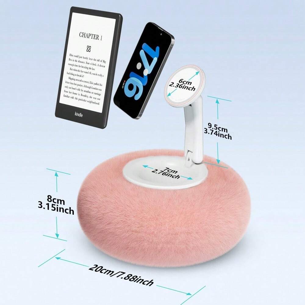 Plush magnetic cell phone pillow holder Smart Magnetic Cell Phone Holder, Compatible with Smartphones, Best Holiday Gift for Christmas, 7.9 inches (20 cm) in diameter, Lightweight, Height Adjustable, Store Small Items