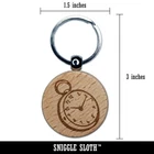 Pocket Watch Engraved Wood Round Keychain Tag Charm