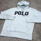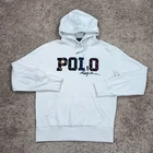 Polo Ralph Lauren Hoodie Mens Small White Striped Script Logo Fleece Pony Logo Condition: - There is some wash wear. - Overall in good used condition. - No holes or stains. - Nice logo. Size: - Mens small. Measurements: - Previous washings may change the sizing written on the tag. - Please refer to the photos above for all measurements. - Please compare our measurements to that of one of your favorite garments. - Please note, item measurements are approximate . All items are bagged and sealed after being photographed, then stored in a smoke free environment to ensure the item is exactly the same as when photographed. I carefully package and ship daily. Feel free to contact me with any questions. All items have been washed per eBay standards & policies.
