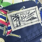 The Polo Ralph Lauren Men's Swim Trunks in size XXL feature a playful all-over print of the iconic Polo Bear surrounded by beach umbrellas. Made of lightweight blended fabric with a comfortable polyester lining, these swim trunks are machine washable for easy care. The elastic waist with a drawstring ensures a customized fit, perfect for surfing or recreational activities by the beach or pool. Representing themes of summer, the tropical coast, and the brand's signature style, these swim trunks are a stylish choice for men looking for a fun and functional swimwear option.
