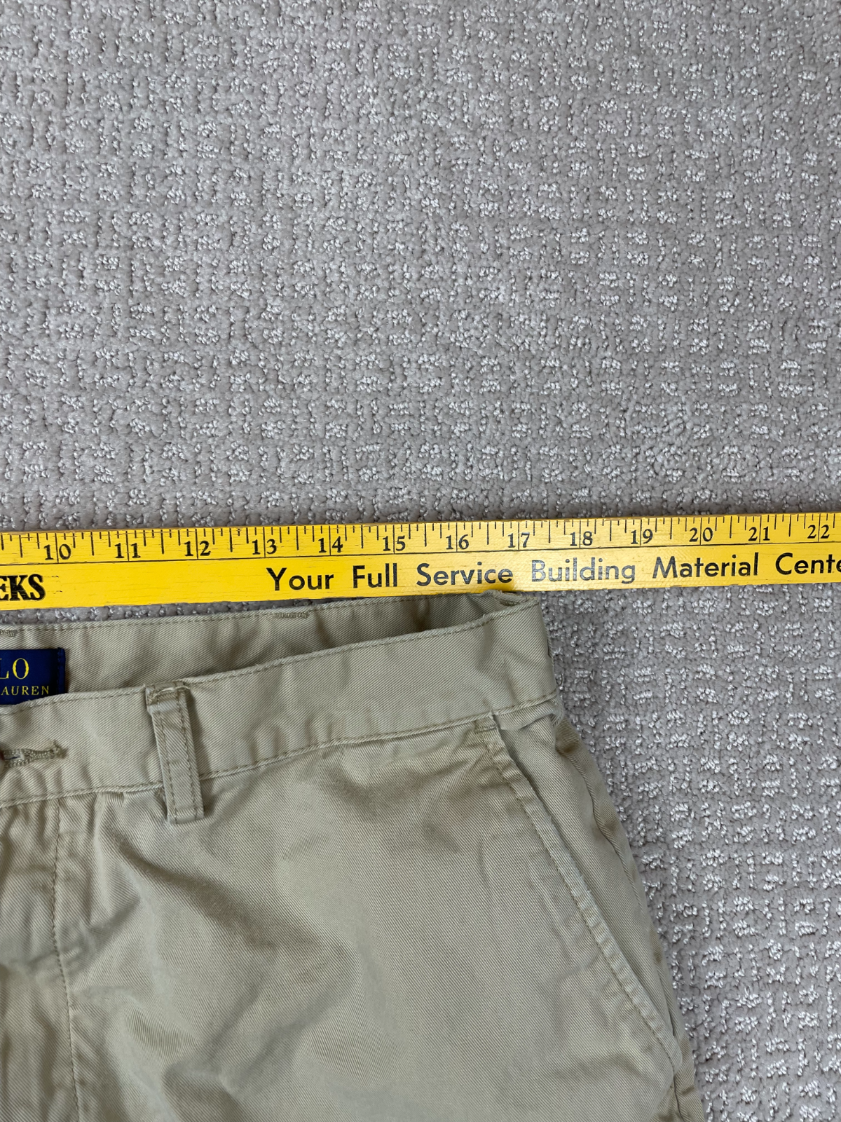 These Polo Ralph Lauren Shorts in Men's Size 36 are a classic and versatile addition to any wardrobe. Made from comfortable cotton twill fabric in a stylish beige color, they feature a flat front design with pockets for added convenience. Ideal for casual occasions, these chino shorts have a zip closure and a mid-rise fit, making them perfect for summer, fall, and spring seasons. The timeless preppy style and quality craftsmanship of Polo Ralph Lauren make these shorts a must-have for the modern man.