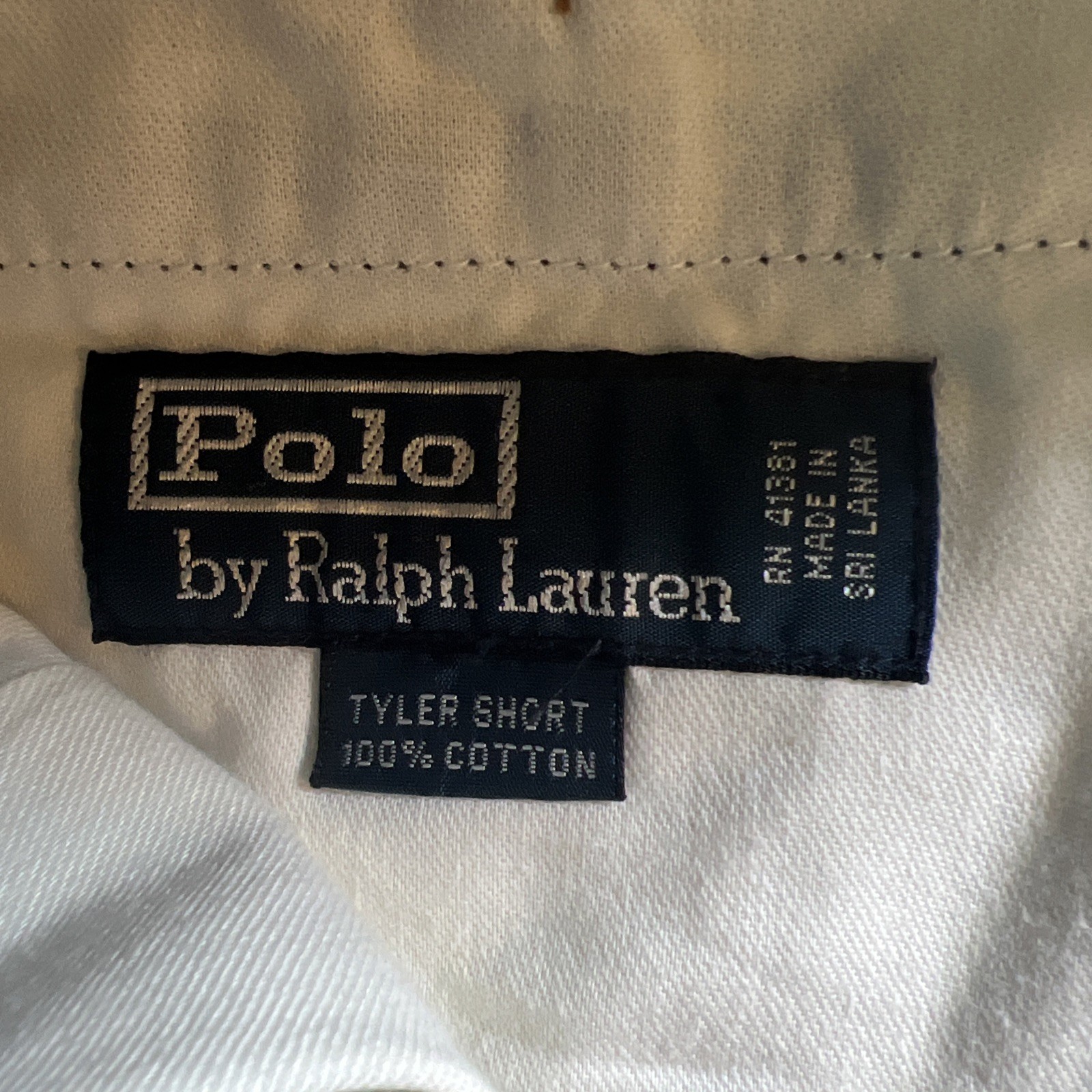 These shorts have a small spot on the back. Hard to notice (See pictures) The Polo Ralph Lauren Tyler Shorts in men's size 36 are a classic and preppy addition to any casual wardrobe. Made from breathable cotton fabric with a medium wash, these plaid shorts feature a pleated front and 9-inch inseam. The multicolor Madras pattern adds a touch of beachy charm, perfect for summer, fall, or spring days. With a timeless chino style and practical features like pockets, these shorts are ideal for travel or everyday wear.