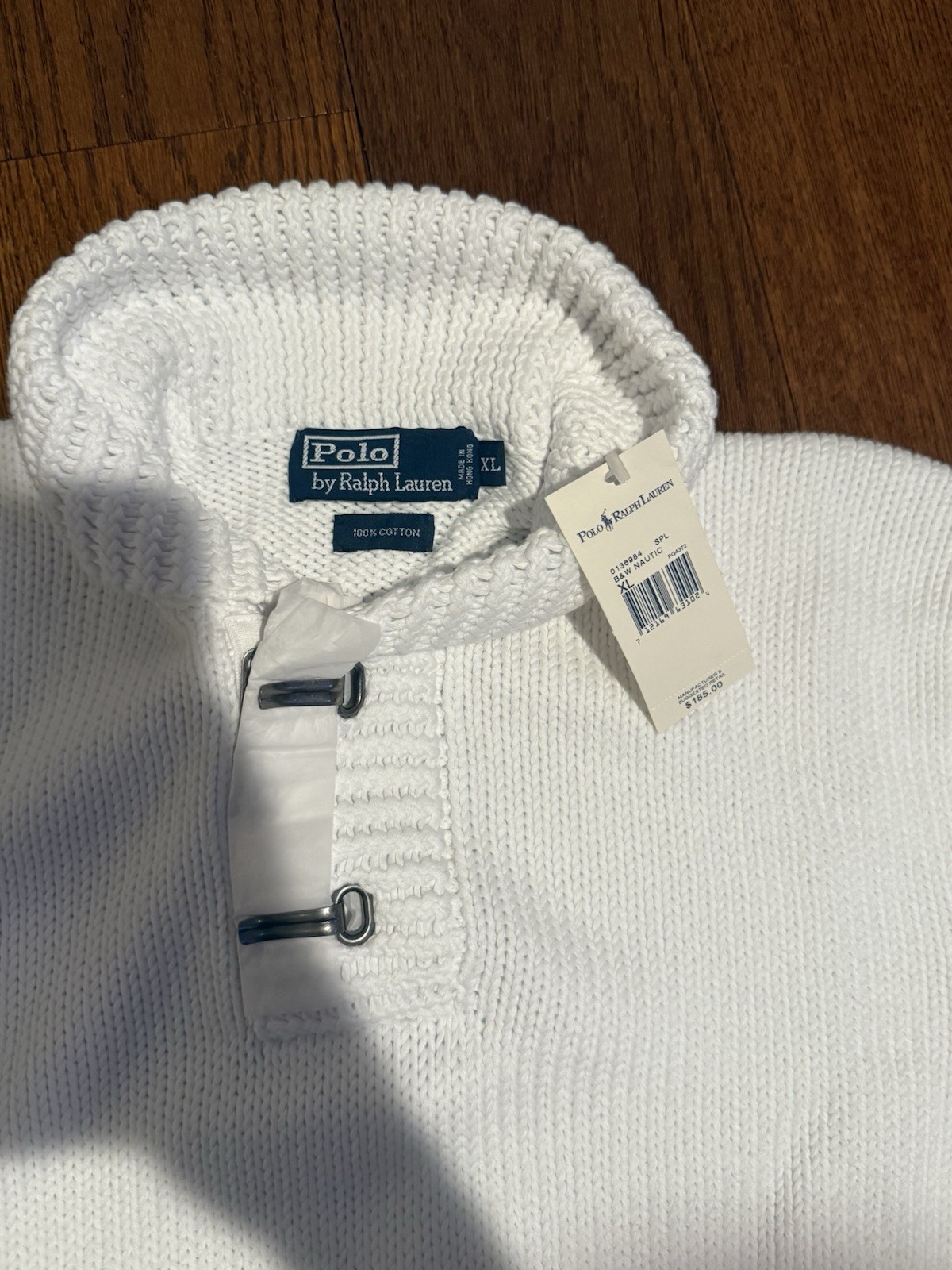 Classic and timeless Polo Ralph Lauren men’s knit sweater in a clean white colorway. This piece features a shawl collar with toggle button closure, offering a refined yet casual look perfect for fall and winter layering. Made from 100% cotton, this sweater has a substantial knit feel while remaining breathable and comfortable. A versatile piece that works well with jeans, chinos, or layered over a button-down. 🔹 Condition: New With Tags (NWT). Item is brand new and unworn with original Ralph Lauren tags attached. No stains, holes, odors, or flaws noted. Stored in a clean, smoke-free environment. Please review all photos carefully for details and feel free to reach out with any questions.