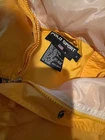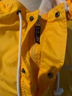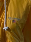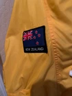 Must have been an event in New Zealand or for New Zealand since there is a patch sewn on after manufacture. Polo Sport M nylon bright yellow hoodie anorak style with drawstrings, Velcro at ends of sleeves and pockets. Poly lining in white with white mesh. Lightweight. Measures 31 long from the shoulder with sleeves almost 30 to seam at side of hood at shoulder. Hood snaps in place with straps from inside to outer back of neck snaps. Says Polo Sport Ralph Lauren with tiny American flag on one side of chest and the New Zealand flag patch on the other. About 24 across the chest and bottom in front. Drawstring at hood, inside at waist and at bottom. Though marked M based on measurements this may fit L or some XL. My consignor wears those sizes.