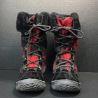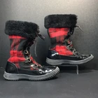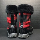 Polo by Ralph Lauren Big Kid Everest Boots Black Leather w/ Shearling Size 4. Black patent leather with red and black buffalo plaid flannel. Black top cuff is shearling. Inside lining is faux shearling. Boot shafts are floppy and are stuffed with paper to make them stand for pics. Preowned excellent condition with a few light scuffs and slight creasing on the leather. From a non-smoking home Bid Kid Size 4 Black leather with red and black buffalo plaid No box