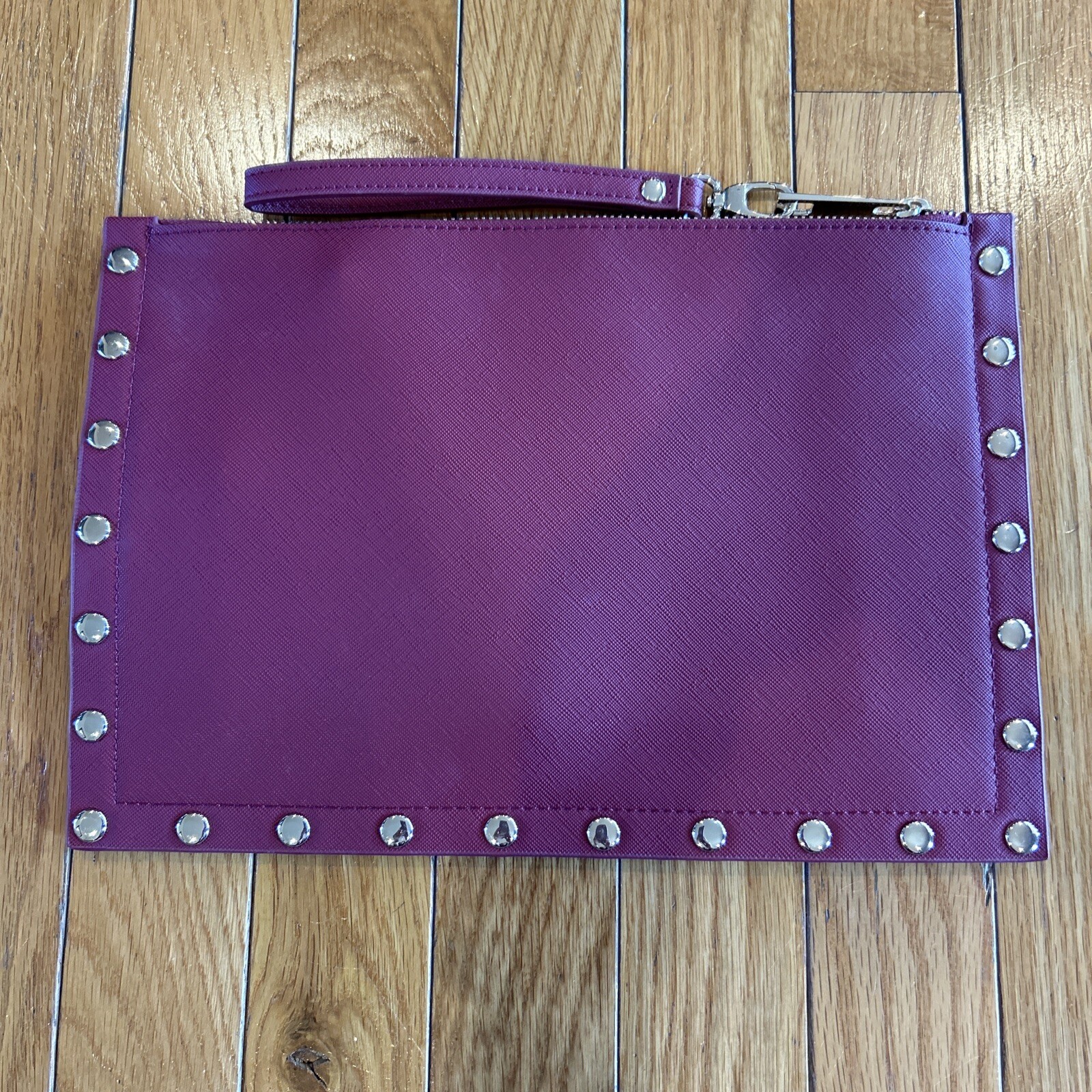 White House Black Market Port Wine Floral Silver Studded Clutch Purse Bag Wristlet Measures 12” x 8” Excellent mint condition from a smoke free home. Inventory tje