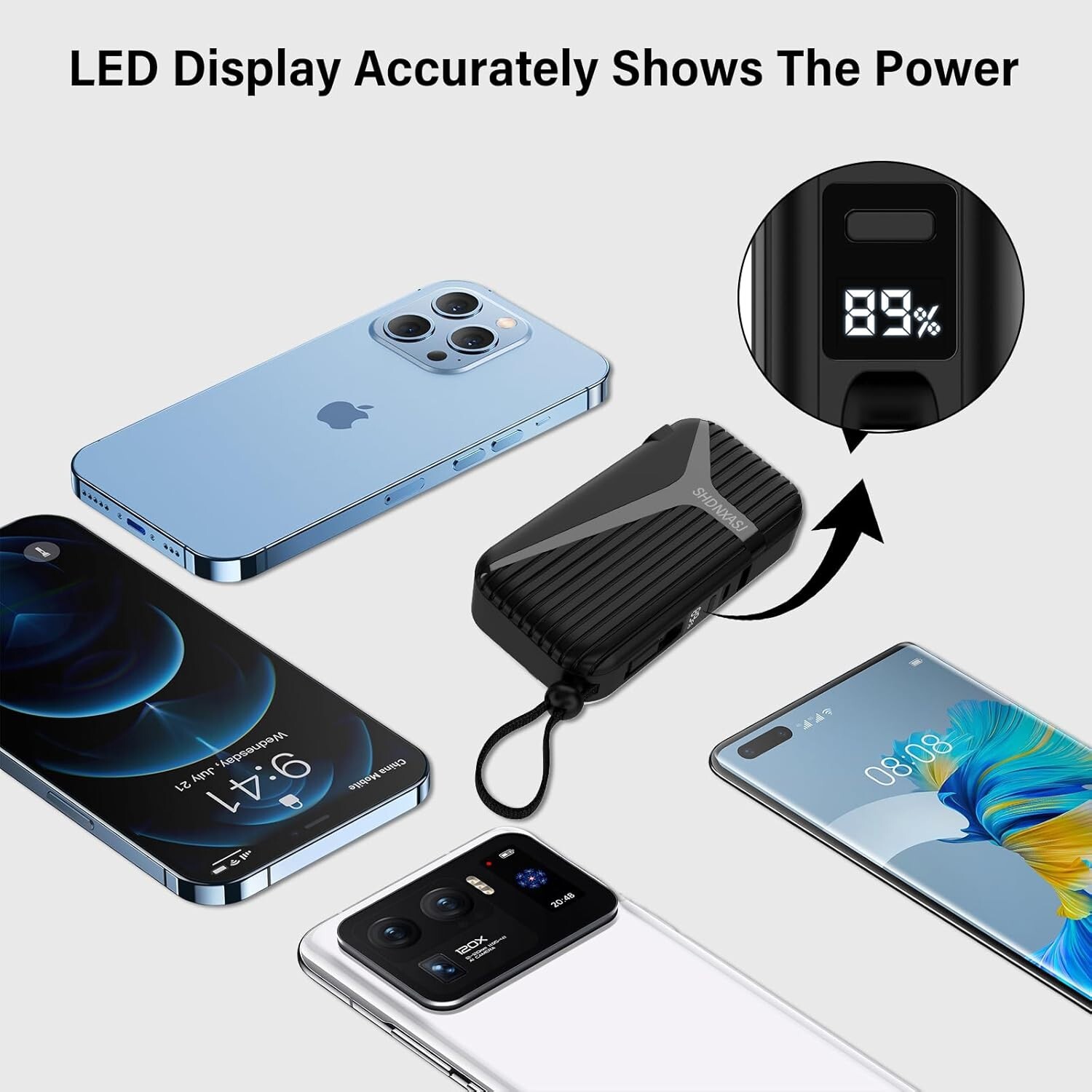 -Brand New - Never Used - Questions: Feel free to ask any Questions - BOX: Never Opened - DESCRIPTION: All-in-One Power Bank: Portable phone charger has 4 outputs and 2 inputs, you may charge 4 devices max at the same time and recharge battery pack easily with 2 options. Compatible with almost all types smart devices on market such as iPhone 15/15 Plus/15 Pro/15 Pro Max, Samsung, Google, Pixel, Android, iPad, Tablet Portable Charger With Built in Cable: Portable charger power bank has 3 built-in cables (Micro USB, USB-C, Lightning ) and recharge battery pack charger portable easily with 2 options, AC wall plug directly charges the power bank. No matter output or input, you don’t need to carry charging cables. Get rid of messy cables, charge at anytime and everywhere 22.5 W Super Fast Charging: Phone charger battery pack portable adopts the latest Super Charger Protocol and Fast Charger Protocol with 22.5 W output Usb-C port and Type-C, upport QC +PD high-capacity power bank with quick charging, it only takes 30 minutes to charge your iPhone 13 from 0% to 80%, which is 3 times faster than most ordinary old power bank 10W power banks on the market 10000 mAh Power Bank: Portable charger power bank is 4.7*2.5*1.1 in,small and portable(This power bank is allowed on a plane). Power bank for iPhone, Samsung Galaxy, Pixel devices. charges. And phone power bank an ideal assistant for camping, hiking, fishing vacation, travel and other outdoor activities. Charging Bank With Digital LED Display: External battery power bank by touching the power button, intelligence LED battery level indicator will show you the remaining battery accurately, eliminating the guesswork and ensuring you recharge in time Portable Charger With Wall Plug: Power bank built in foldable AC wall plug, compatible with iPhone, Android, and USB C devices.Built-in AC wall plug allows you to charge directly from a wall outlet, no need to carry charging cables for smart devices - OFFERS: Reasonable offers are considered, LOWBALLERS, Best price and Lowest askers will be ignored - all sales final/no refunds/ no exchanges/ no returns - Disclaimer: I do not own the brand's trademarks, logos, pictures, or products posted. I do not intend to infringe on copyright. I find such content available on the internet. Contents are considered fair use. - Portable Charger with Built in Cable and AC Wall Plug,10000 mAh External Battery Power Bank, LED Display 4 Outputs 2 Inputs, Travel Phone Charger Battery Pack for iPhone 15 14 13 Samsung iPad