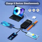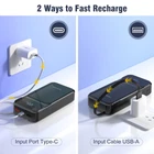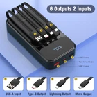 🔋【Portable Charger with Built-in Cables】 Built-in 4 cables, 3 output cables and 1 input cable (Lightning, Type-C, Micro, USB-A), it can charge almost all electronic devices, such as iPhones, Android Phones, Ipads, Ear buds, Smart watch, etc., so that you no longer need to carry all kinds of cumbersome cables. 🔋【6 Outputs and 2 Inputs】 The portable charger has a total of 6 outputs and 2 inputs, allowing you to charge up to 6 electronic devices, and you can also use the 2 inputs to easily charge this power bank. The bi-directional Type-C port can be used for both input and output. 🔋【20000mAh Large Capacity Battery】 20000mAh battery pack measures only 5.78×2.71×1.24 inches, 0.92 pounds, easy to carry. Large capacity battery allows you to go out without fear of insufficient power worry, enjoy a good trip. 🔋【22.5W Extreme Charging】Maximum 22.5W Extreme Charging is two to three times faster than traditional chargers, dramatically shortening the charging time.LED display shows the precise remaining power in real time, so you can be prepared for any problems. 🔋【What You Get】1 x power bank、1 x Type-C charging cable.