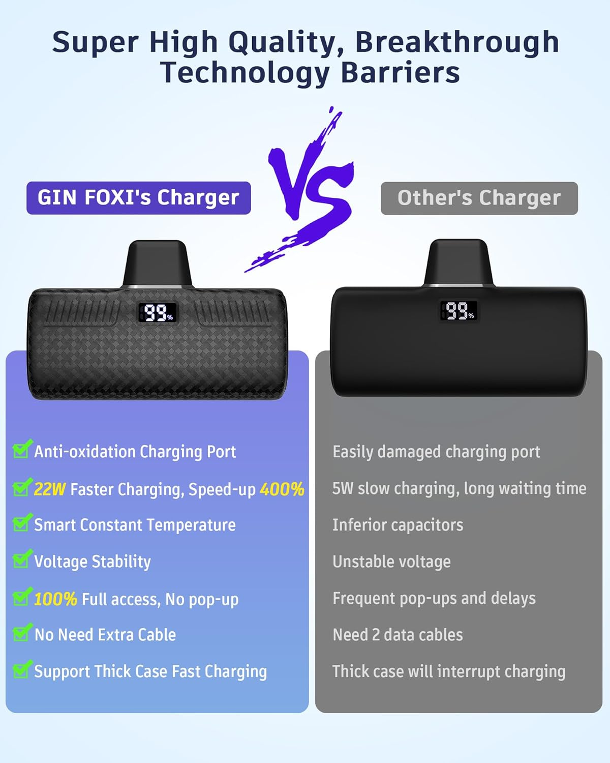 Store New Arrivals Add to Favorite View Feedback Contact OliverStore has been in the US market for over 5 years and offers free delivery to the customer's home with professional customer service Portable Charger for Iphone, Mini Power Bank 5000Mah Fast Charging (22W) with LCD Display, Cute Battery Pack for Iphone 14/14 Pro Max/13/12/Xr/8/7/6 Black Description đă12V 22W PD Fast Charging & Automatic Trickle ChargingăđHigher power, faster charging. 22W PD fast charging enables charging your iphone 13 from 0% to 55% just in about 30 mins. Get rid of low power instantly!! When charge to 80%, it will start smart trickle charging ensures safer fast charging. Extra 5000mAh capacity for iPhone portable charger with excellent battery performance, suitable for daliy outing, short trips and emergency charging. đăCompact & Mini, More Fashion & Elegantăđ0.2 pounds and 3.07"*1.33"*0.9", lipstick szie makes it easier to carry around for daily use. Ultra compact & lightweight, takes up almost no space. Throw it into your pocket or purse, it's right there when you need a charger. Stylish and texture design makes it elegant and unique. More suitable for people who like to go out lightly. đăSmart LCD Digital Display, Built-in Connector DesignăđSmart LCD digital display can easily track the status of your charge. It accurately displays 1% to 100% of the remaining power. The built-in connector allows plug and charge, without messy cables. Adopts original charging base, perfectly compatible, provide more efficient and safe charging performance. đăIntelligent MultiProtect Safety, Ultimate ProtectionăđThe Multi-protection smart microchip and smart temperature monitoring system can protect your phone from short circuit, overheating, overcharging, over voltage or over current, etc. The adventure-grade drop-resistant structure and premium PC hard-shell design feature superior resistance to pressure and scratches. The charging port was professional tested 30000 times in insertion and withdrawal, long time use like new. đăExclusive Elaborate Design, More Professionalăđ â We offer an extra exquisite storage case as the gift, convenient for you to store the protable charger. ⥠2 LED light design of the charging port to avoid blind plugging at night. ⢠Equipped with a dust cover to avoid daily scratching. ⣠Original high-quality fast charging port, ensures 100% compatibility, no pop-up. ⤠Advanced welding process, charging port and the phone link is very stable, . It is an excellent emergency mobile power. Portable phone charger for iphone, GIN FOXI small portable charger 5000mah ultra-compact power bank, mini portable charger for iphone, portable phone charger, portable charger for iphone 13, portable charger foriphone 12, portable charger for iphone 11, portable charger for iphone 14 Item model number AP-PB003A Battery Capacity 5000 Milliamp Hours Color Black Product Dimensions 3.1 x 2 x 0.98 inches Connector Type no Item Weight 5.3 ounces Batteries 1 Lithium Ion batteries required. (included) Special features Digital Display, LED Indicator Lights, Pocket Size Special Feature Digital Display, LED Indicator Lights, Pocket Size Other display features Wireless ABOUT US We offer the best prices around on high quality products. Our E-store includes media such as books, movies, music and games while offering electronics, toys, sporting apparel, clothing, tools, general home, garden items and more. SHIPPING We are always working hard to ensure your package arrives as soon as possible. Please understand that some factors like weather, high postal traffic, and the performance of shipping companies are outside of our control. We offer free shipping to the lower 48 states and ship within 2 business days of payment, usually sooner. We do not accept P.O. Boxes. Please provide a physical address. For shipping outside of the continental USA, we only use eBay's Global Shipping Program. The item is shipped to KY and then sent to the rest of the world. International customers are responsible for all duties and taxes. Continue to 'check out' to calculate costs for shipping the item to your country. Messages regarding eBay's Global Shipping Program MUST be directed at eBay EXCLUSIVELY. RETURNS We offer a 30-Day Return Policy on items in which you are not completely satisfied with. You have the option of a full-refund or an exchange of the item. No returns are available on items shipped outside of the USA PAYMENT We accept PayPal. CONTACT US This page content is yet to come Please ad us to your favorite seller and visit again later Thank You CUSTOMER SATISFACTION We try our very best to make sure every customer is completely satisfied. If there's a problem, message us! We're happy to help. WE ACCEPT