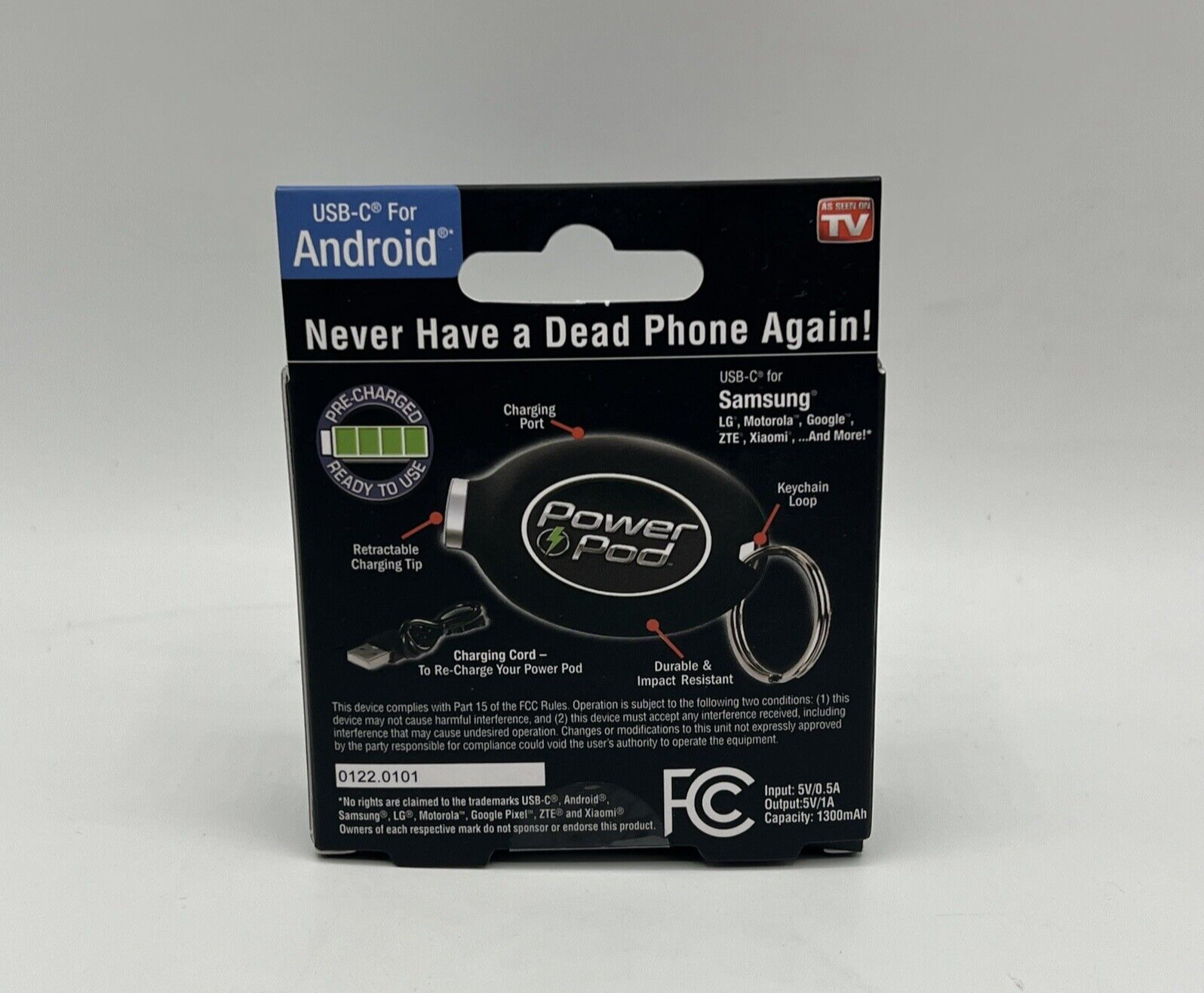 Thanks for Stopping By! This is Power Pack 1 Pod Deluxe Portable Emergency Phone Charger & Cable USB-C Android. Will be shipped via USPS Ground Advantage. Shipping is Safe, Fast and Free. Feel free to reach out if you have any questions. Feedback is always appreciated and reciprocated. Thanks for checking it out and please enjoy the rest of your day!