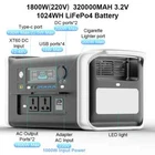 1800W 220V Portable Power Station LiFePo4 Battery Solar Generator Storage Energy 1600W 110V 1024Wh Backup PowerBank Camping Fishing Model: APower1000 Battery capacity: 320000mAh(1024Wh) Battery type: LiFePo4 Cycles: 3000*times AC output: 1600W 110V / 1800W 220V 50&60Hz DC output: 12V20A Type-C output: PD100W USB-A x3 output: QC3.0 18W(MAX) DC charging: XT60 14-48V Size: 447*234*219mm Product weight: 13.35Kg Output waveform: Pure sine wave Protection: BMS 1800W 220V Portable Power Station LiFePo4 Battery Solar Generator Storage Energy 1600W 110V 1024Wh Backup PowerBank Camping Fishing
