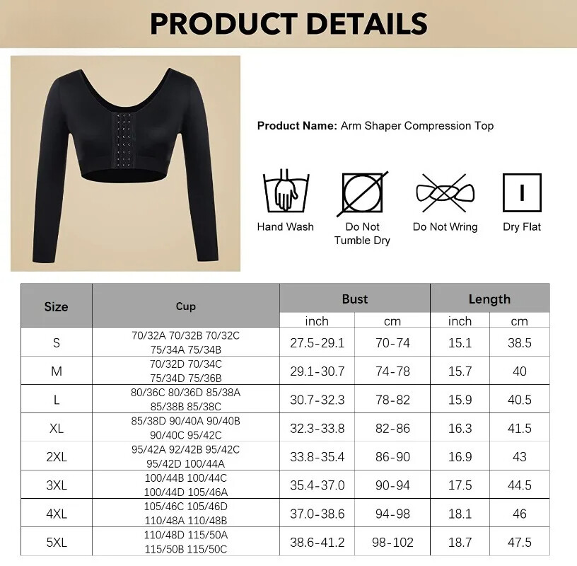 These arm shapers are a game-changer! They provide firm yet comfortable compression, helping slim and tone my arms effortlessly. The push-up bra design adds extra support, and they stay in place all day. Perfect for post-surgery recovery or just wanting a more sculpted look. Just be mindful of the CA Prop 65 warning—otherwise, love them!