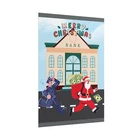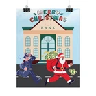 A funny poster featuring a design of Santa Claus running away from a bank with his sack full of money while being chased by a police officer. This poster adds a humorous and festive vibe to any room during the holiday season. Perfect for those who enjoy unique and quirky decor. Product features - Two paper options - semi-gloss and matte - Multiple sizes to choose from - Giclée print for bright and intense colors - Archival quality paper for long-lasting design - Satin finish for full sharp color fidelity Care instructions - If the print does gather any dust, you may wipe it off gently with a clean, dry cloth.