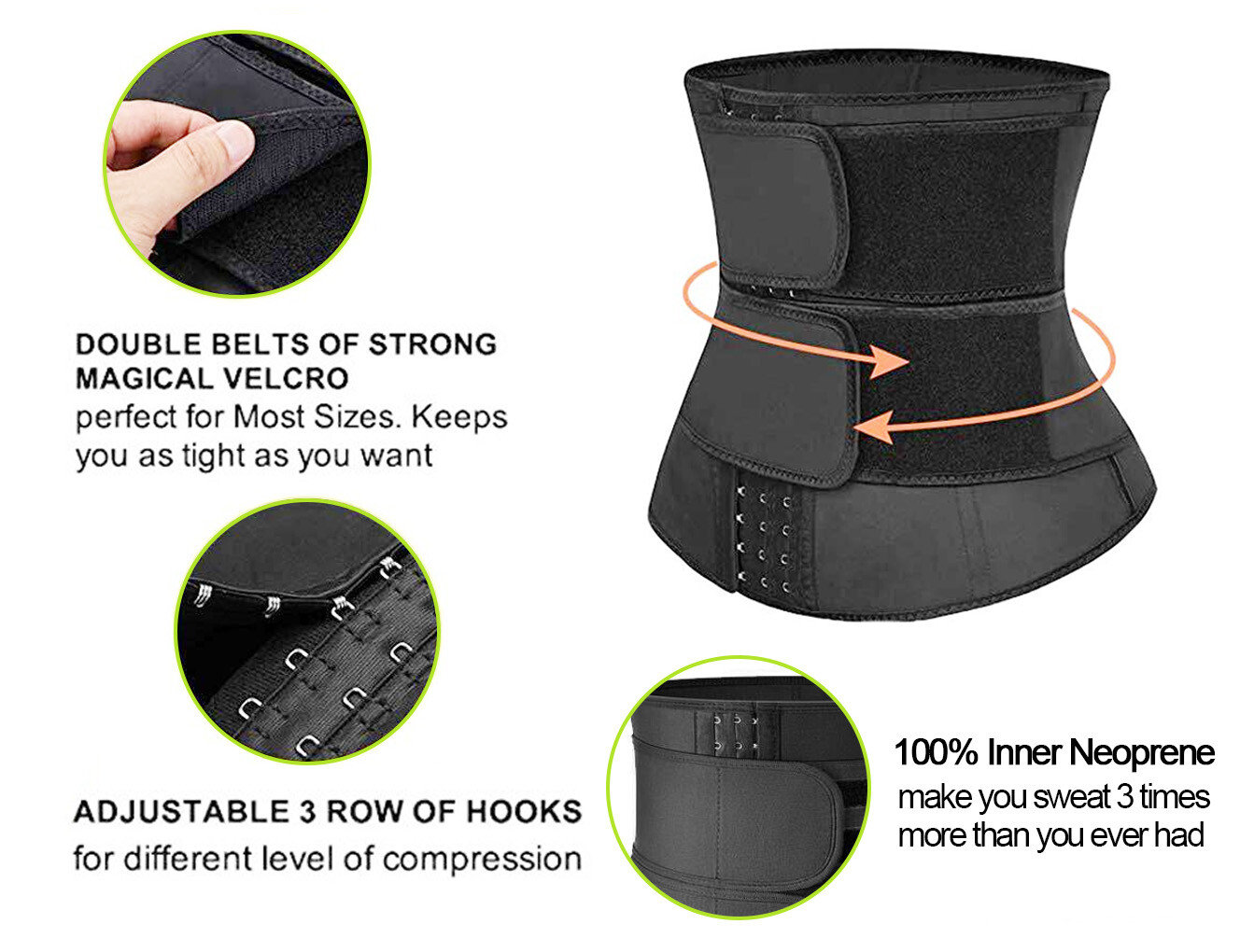 Waist Trainer Cincher Trimmer Sauna Sweat Gym Belt Slimming Sports Body Shaper If you have any question about the product ,pls feel free to contact us. Thanks for your visit ! Product Discription Shell:Polyester100%;Lining:Neoprene100% Imported Made Of Upgrade NEOPRENE Material: The waist trainers are made of 0.55mm 2-layer fabric. Outer Neoprene100%, delicate feel, soft, better elasticity, better shaping effect; Cotton-spandex lining absorbs moisture and feels soft against your skin. 12 Inch Widen Workout Waist Trainer Perfect Curve Design: Widen design has good coverage, pushes the breast up, more calories burned, holds and hides the extra belly fat and smooth the tummy. Double belts and 3 rows of large hook-and-eye is easy to wear and adjustable with the changes of the waistline and exercise intensity, reduce your waistline by more than 2-4 inches, instantly shapes your body into an hourglass figure. Heavy Duty Sturdy Waist Trainer And Back Support - Our Latex waist trainer corsets, which built-in 3 STEEL BONES, not only snug fit and pressure your waist, but also protect the ribs from hurt, provide enough support for back pain relief and correct your posture. It is the best fitness equipment for all kinds of exercises in the gym. Great Fit & Helps form Shape: High compression Durable elastic latex helps you sweat to eliminate toxins, accelerate calorie burning process, tummy control, weight loss, and promote postpartum waist recovery. Maintain muscle warmth and support to prevent fatigue and injury after exercise. Good for the workout, gym, sport, weight loss, daily body sculpting or even a postpartum support girdle. WARM TIP: Due to the Latex Material, there may be a slight odor after opening the package, it is tasteless after washing. Please wash in mild detergent before first use. And it should not exceed HALF AN HOUR for the first time use. If you have any questions about our products, please contact us as soon as possible and we will give you a reply within 24 hours and help you solve it. Size Chart (1 inch=2.54cm) Please compare the measurements with yours before you buy, the sizes are just for reference. Product pictures: Payment: We accept all payment methods now. Payment must be made within 48 hrs of the auction end time. Import duties, taxes and charges are not included in the item price or shipping charges. These charges are the buyer's responsibility. Shipping Policy: 1.All item are shipped within 1 business days once full payment is settled. 2.If you can't get your items in time, please feel free to tell us first, we will check and solve it for you soon. 3.Sometimes have a little delay due to the weekend or holiday. If you can't get our mail after 48 hours,please check your spam or via ebay. Return Policy: We are offer and accept a 30 days return guarantee on all our goods.We hold that you can enjoy your buying from our shop so we will do all we can to make it so. Products without any quality problem can’t be refund. Products with quality problem in 30 days can be returned and refund.If you apply to replace our products,please ensure that the product has not been used and with original packing.In most circumstances,buyers are responsible to pay the shipping and handling for replacements. CUSTOMER SERVICE : We commit to offer customer the best products and services.We believe that communication is the best way to solve all the problems.If you have any questions or concern about your eBay order,please feel free to e-mail us.We will reply you as soon as possible.Feedback is very important to us.If you have any questions, please contact us for resolutions before leaving negative feedback,so that we can satisfactorily address your concerns.We will be more than happy to solve any problems for you with a happy ending.If you are happy with our item, please kindly leave us good feedback with five stars.We are greatly appreciate your positive feedback.Thank you