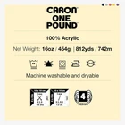 When it comes to value, nothing beats Pound! This worsted weight yarn is available in a wide range of shades, perfect for a variety of projects – accessories, garments, home décor, baby and projects. Pound skein is economical, with excellent yardage – skein makes four scarves. Conveniently washable and dryable. Content: 100% acrylic yarn, 4 worst weight Ball Size: 454g / 16 oz, 742 meters / 812 yards Care: Machine wash and dry Knitting Gauge: 16 sts and 20 rows with a 5 mm (U.S. 8) knitting needle Crochet Gauge: 12 sc and 13 rows with a 5 mm (U.S. H/8) crochet hook