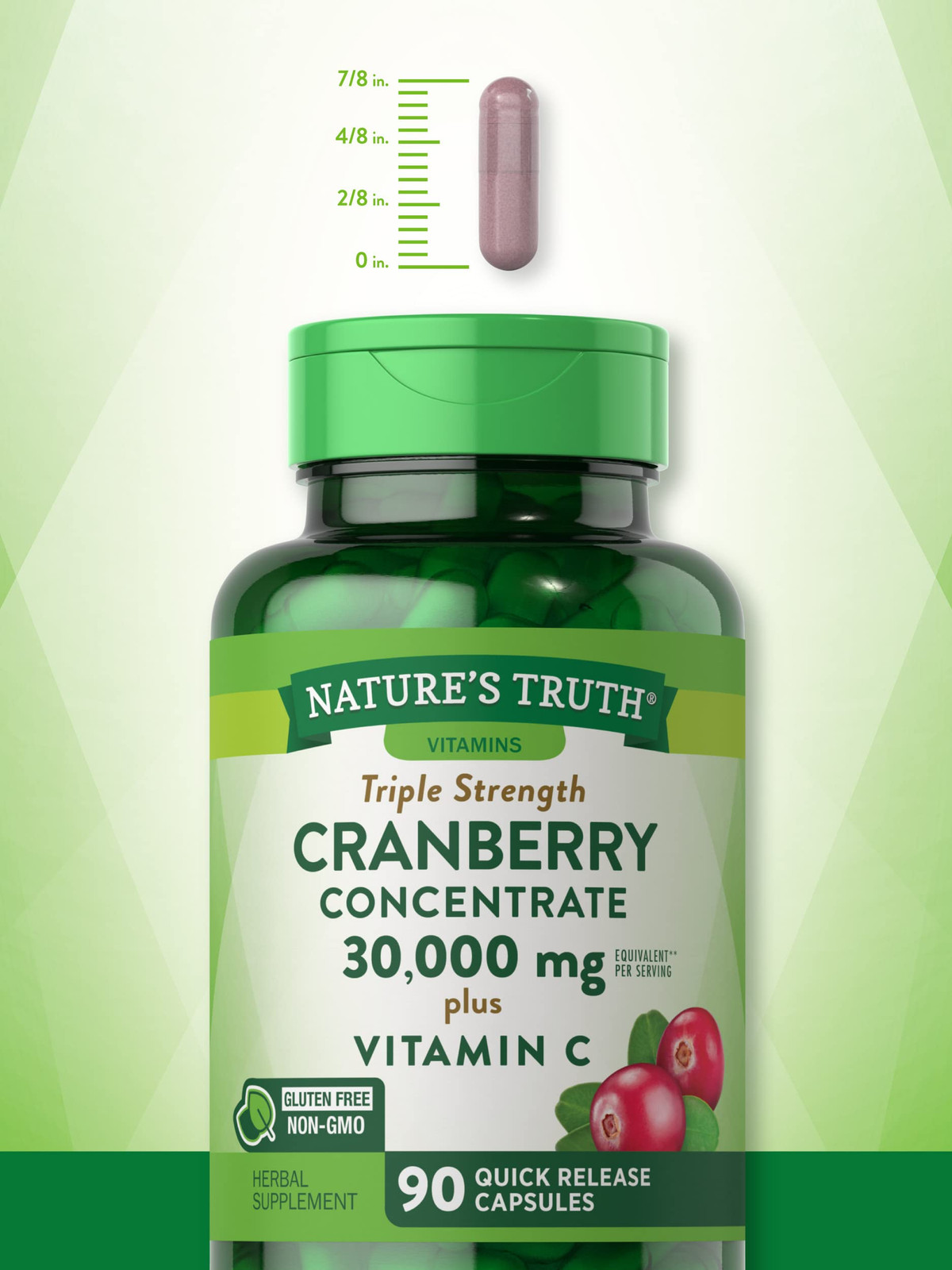 BOTANICAL SUPERFRUIT: Equivalent of 30,000 mg of Cranberry per serving** ADDITIONAL SUPPORT: Each serving also contains 200 mg of Vitamin C HONEST & TRANSPARENT: Nature’s Truth is committed to delivering the best quality wellness products EXPERTS YOU CAN TRUST: Backed by three generations of Vitamin Innovators for unrivaled quality MADE WITHOUT: Gluten, Wheat, Milk, Lactose, Soy, Artificial Color & Sweetener, and Non-GMO