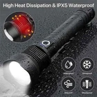 Product Description: Brightness: 4000 lumens Waterproof rating: IPX5 Beam distance: 1093 yards Power Capacity: 10000mAh Material: Aviation aluminium LED lamp life: 100,000 hours Usage time: 6 to 12 hours (approx.) Lighting Modes; High, Medium, Strobe Features: SUPER BRIGHT WIDE BEAM: The 4,000 lumen torch can effortlessly light up two football fields, providing a reliable and convenient lighting tool. PORTABLE AND RELIABLE: The torch fits easily into a car or survival kit. The strobe and SOS functions are your saviour when making roadside repairs or signalling for help. BATTERY INDICATOR: Powered by rechargeable batteries that can be recharged via USB cable (included), the torch can last up to 6 hours in low-light mode, and the torch has a four-cell indicator to remind you to recharge it in time. When the number of indicators decreases, it means the power level is down. IPX5 WATERPROOF: Waterproof rating up to IPX4, the body of the torch is made of high quality splash-proof aluminium alloy waterproof and non-slip to ensure that it can be used even in rainy days, suitable for outdoor use. Three modes:There are three lighting modes: high, low and strobe, you can choose the right lighting mode according to your needs. 10000 mAh REECHARGEABLE BATTERY: Equipped with 10000 mAh ΒATTERY and upgraded P70 LED chip, it can provide you with up to 12 hours of medium brightness illumination. Beam distance up to 3280 ft. IMPACT RESISTANT: Constructed of aircraft grade aluminium for pressure and impact resistance. 2 LIGHTING MODES - NARROW BEAM AND WIDE BEAM: Wide beam (flood) and narrow beam (spot) lighting modes are designed to make the flashlight suitable for more lighting situations. Package Includes: 1 x Powerful LED Flashlight 1 x 10000 mAh rechargeable battery 1 x USB cable 1 x Flashlight Lanyard 1 x English Manual