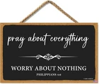 Pray About Everything Sign Farmhouse Style Bible Verse Wall Decor Wooden Sign 11 x 6 inch Wooden Home Decoration Church Decoration (Black-4) Product Details Color: Black-4 Brand: SEIFUD MPN: Does not apply UPC: Does not apply EAN: Does not apply Color: Black-4 Brand: SEIFUD Material: Wood Theme: Love Recommended Uses For Product: Home decoration, gifting, religious or motivational decoration Mounting Type: Wall Mount Product Dimensions: 11"L x 6"W Shape: Oblong Item Weight: 0.15 Kilograms Style: Art Deco Pre-printed: Pray About Everything, Bible Verse Included Components: Jute Rope Item Weight: 5.3 ounces Batteries required: No High-precision printing: achieve vivid colors, realistic patterns and waterproof effect. Perfect signage for indoor and outdoor hanging. Golden ratio: 11x6 inches (28cm x 15.2cm) Configuration:Comes with a 42cm long jute rope, ready to hang on the wall. Ideal Gift: The wooden material is light weight, easy to see and beautiful in appearance. It will be a great gift for friends or family. Suitable for decoration in many places: hang in the center of doors, door and drawer handles and bathrooms, wall hooks, flower and ornament displays, table center pieces and chairs, etc. It looks wonderful and embellishes the most perfect home.