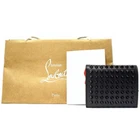 This Christian Louboutin wallet is a stylish and functional must-have! The black and red studded design adds a bold, luxurious touch, while the compact size fits perfectly in any bag or pocket. With four card slots, a bill compartment, and a coin case, it keeps everything organized. The used condition shows minor wear, but the quality and iconic Louboutin red lining still shine. A fantastic find for any fashion lover!