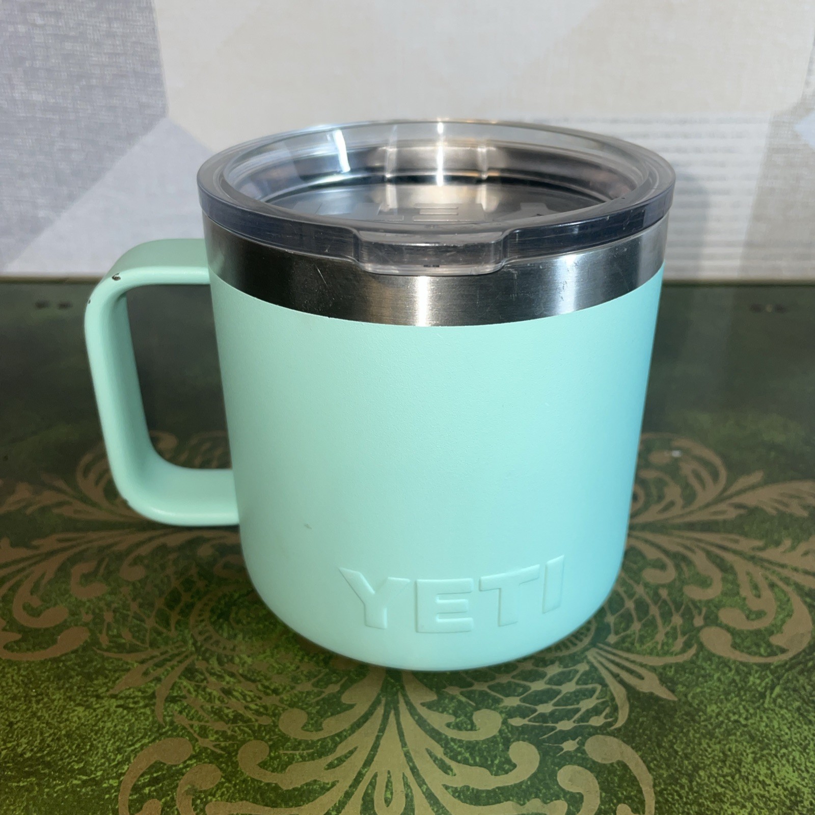 Keep your beverages at the desired temperature with the Yeti Seafoam Stainless 14oz Coffee Mug. Designed to maintain hot drinks warm and cold beverages chilled, this insulated tumbler is perfect for any outdoor activity, sporting event, or daily routine. Its vibrant seafoam color adds a touch of style to your drinkware collection. The mug comes equipped with a secure lid to keep spills at bay and your beverage safe. Whether you're a fan of morning coffee or afternoon smoothies, this Yeti mug, with its durable construction and efficient insulation, is an excellent choice for those who value convenience and temperature control.