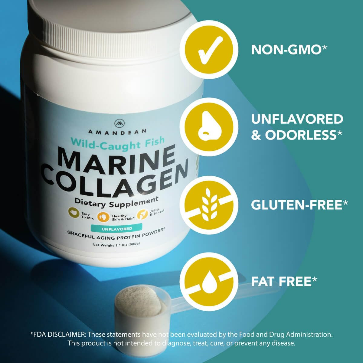 Quality & Value - Collagen Peptides are sourced 100% from wild-caught whitefish in the pristine waters of the North Atlantic. Unflavored, easy to mix, and enzymatically processed. Non-GMO, single ingredient from a transparent and sustainable source. 50 servings! Age Gracefully - Packed with natural glycine, known as the “anti-aging amino”, supports youthful smooth clear skin, strong nails, and full shiny hair. Help clear up skin problems with natural nutrition. Collagen protein has similar benefits as bone broth. Look & feel your best. Heal Your Body From The Inside - We need a collagen to help replace that which is lost as we age. After 30, our collagen levels start to drop by 1.5% per year. A gut friendly protein that supports a healthy metabolism, muscles, joints, bones, ligaments, cartilage. Faster post workout recovery! Don't Settle For Less - Beware of collagen hydrolysate made from farm raised fish that are packed full of hormones and antibiotics. Our fish gelatin is hydrolyzed to a low 3000 Dalton molecular weight for maximum bioavailability. our container, which is 500g = 1.1lbs = 17.6oz. Crafted With Care - We believe in selectively sourced, natural, non-GMO, and sustainable ingredients. Our supplements are 3rd party lab tested for purity and safety, and always manufactured in cGMP registered facilities in the US. Join the superhuman family and experience the benefits of collagen today! Plastic neutral.