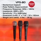 The American Audio VPS-80 is great both on stage and in the studio. Its ultra-smooth frequency response accurately provides clear, natural sound while is super cardioid pattern ensures maximum gain before feedback. This live stage performance microphone comes with microphone, microphone clip, microphone cable and storage bag. Neodymium Capsule Polar Pattern: Super cardioid Frequency Response: 50Hz ~ 18KHz Impedance: 300Ω ± 30% Sensitivity: -74 ± 3dBV/µbar Dimension (LxW): 2” x 7.25” / 52 x 182mm Weight (w/o cable): .6 lbs. / .28 kg. What’s Inside: 1x VPS-80 Microphone 1x Microphone Clip 1x Microphone 15-foot (4.5M) XLR to XLR Cable 1x Storage Bag Live Stage Performance Microphone comes complete with microphone, microphone clip, microphone cable and storage bag.