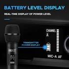 MICROPHONE PARAMETER: 1.Frequency Range: 520.30~579.30MHz. 2.Channel number A, B channel 30 (conservative value) each time pairing, the ID code changes randomly, in the frequency range set by the manufacturer. 3.Oscillator mode DSP chip frequency lock. 4.Frequency Stability: ±10ppm. 5.RF Power: 10dBm. 6.The frequency is 40 to 18000Hz. 7.Distortion Degree: ≤0.5%. 8.Battery specifications 1.5Vx 2/2 AA Size alkaline batteries. 9.Continuation time 4-6 hours(depending on battery type and capacity). RECEIVER PARAMETER: 1.Frequency Range: 520.30~579.30MHz. 2.Number of channels A, B channel 30(conservative value) each time pairing, the ID code changes randomly, in the frequency range set by the manufacturer. 3.Oscillator mode DSP chip frequency lock. 4.Rate Stability: ±10ppm. 5.Receiving Sensitivity: -95~-71dBm. 6.The frequency is 40 to 18000Hz. 7.Distortion Degree: ≤0.5%. 8.The Signal-to-Noise Ratio: ≥90dB. 9.Audio Output: 350mv(Max). 10.DC Voltage: DC 12V 5W. 𝐒𝐭𝐚𝐛𝐥𝐞 𝐖𝐢𝐫𝐞𝐥𝐞𝐬𝐬 𝐏𝐞𝐫𝐟𝐨𝐫𝐦𝐚𝐧𝐜𝐞: Each mic has a top-class cardioid dynamic sound core and upgraded circuit. Transmits sound smoothly. Stable and amazing sound. Ideal for karaoke, parties, etc 𝐋𝐨𝐧𝐠 𝐃𝐢𝐬𝐭𝐚𝐧𝐜𝐞 𝐑𝐞𝐜𝐞𝐩𝐭𝐢𝐨𝐧: Has two high-gain antennas. Stable signal. Anti-interference. Covers up to 260 ft/80 meters. Retractable antennas for storage and portability 𝟐x𝟑𝟎 𝐀𝐝𝐣𝐮𝐬𝐭𝐚𝐛𝐥𝐞 𝐂𝐡𝐚𝐧𝐧𝐞𝐥𝐬: Dual mics in UHF 510-590MHz band. 30 adjustable frequency groups per channel. Select frequencies. No interference. Use multiple groups simultaneously 𝐄𝐚𝐬𝐲 𝐭𝐨 𝐔𝐬𝐞: Once you turn on the wireless mics and the receiver, they'll pair automatically. Moreover, the receiver tracks frequencies. Keep in mind, each mic requires 2 x AA batteries (not included) 𝐔𝐬𝐞𝐫-𝐅𝐫𝐢𝐞𝐧𝐝𝐥𝐲 𝐃𝐞𝐬𝐢𝐠𝐧: The simple and intuitive operation of this microphone set makes it a breeze to use. No complicated setup or technical skills required. Just turn it on and enjoy seamless audio transmission 𝐖𝐡𝐚𝐭 𝐘𝐨𝐮 𝐆𝐞𝐭: Microphone system set contents 1x receiver, 2x bodypack transmitter, 2x lavalier microphone, 2x headset microphone, 1x power adapter, 1x 6.5mm audio cable, 1x user manual. 𝐍𝐨𝐭𝐞: Batteries not included