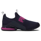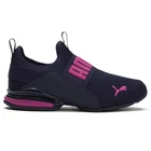 Axelion Slip On Wide Training Shoes Product Details Knit upper Slip on entry EVA midsole Rubber outsole Axelion is here to up your game. The breathable perforated upper combines with a TPU shank in the midfoot and EVA heel pod for stable cushioning and support through movements. A true gamechanger for comfortable everyday training shoes. Additional Details Color: Blue Occasion: Casual Gender: Womens Age: Adult Brand: Puma