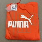 Introducing the Puma Graphics No 1 Full Length Logo Hoodie in Men's XL size. This hoodie comes in a striking orange color and features a drawstring closure with lace-up accents. The long sleeve hoodie is made of comfortable cotton material and has a flat heel height of 0 to 1/2 inches. It is perfect for casual occasions and is a great addition to any activewear collection. The hoodie is designed with the Puma logo and is made in Vietnam. This hoodie is a must-have for men who love style and comfort.