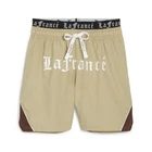 Hoops X Lafrance Woven Shorts Product Details PUMA HOOPS x LaFrancé branding Zip pockets on each side for storage Mid rise waistband Regular fit 100% polyester PUMA HOOPS and LaMelo Ball's LaFrancé brand have teamed up for a capsule collection that takes the superstar's signature style and gives it a high-end approach. The result? Styles like these shorts with extravagant branding. Additional Details Color: Beige Occasion: Casual Gender: Mens Age: Adult Brand: Puma