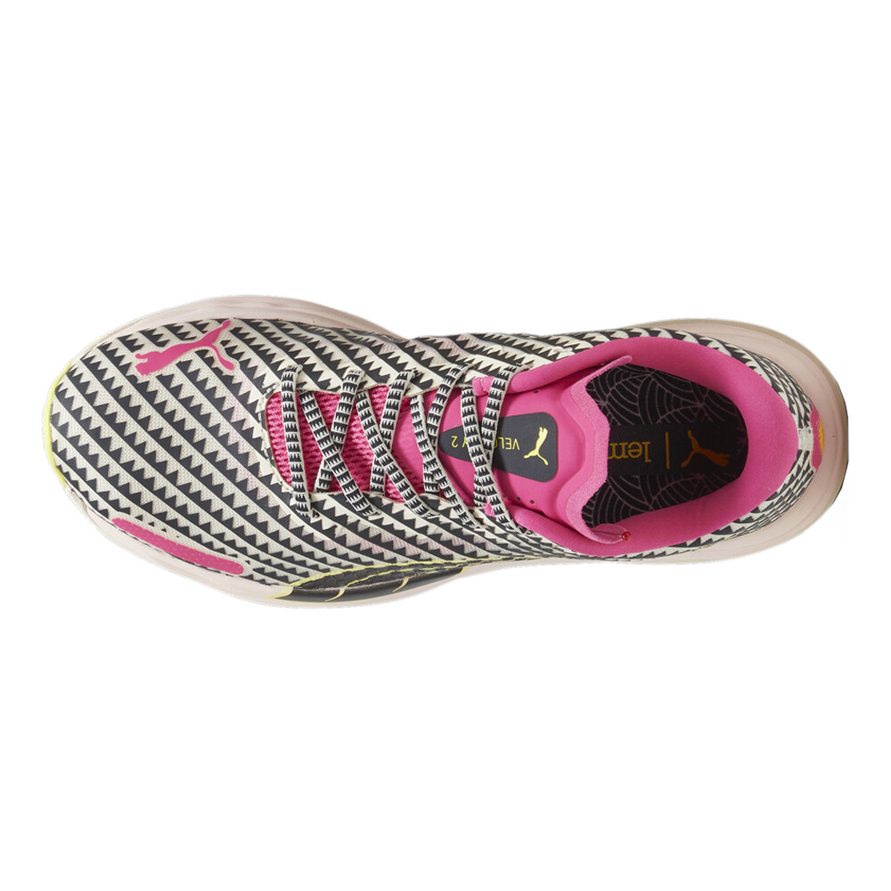 LEMLEM x Velocity Nitro 2 Running Shoes Product Details Engineered mesh upper Great forefoot grip Midfoot stability Decoupled heel Heel-to-toe drop: 8mm In a continuation of our female artist series, we have partnered with lemlem to amplify the voices of African, female artisans in a 360 studio capsule collection. This collab edition of our everyday running shoe the Velocity Nitro 2 combines a bright, bold print from lemlem with outstanding technological features such as NITRO foam and PUMAGRIP rubber. Additional Details Color: Beige, Pink, Yellow Occasion: Casual Gender: Womens Age: Adult Brand: Puma