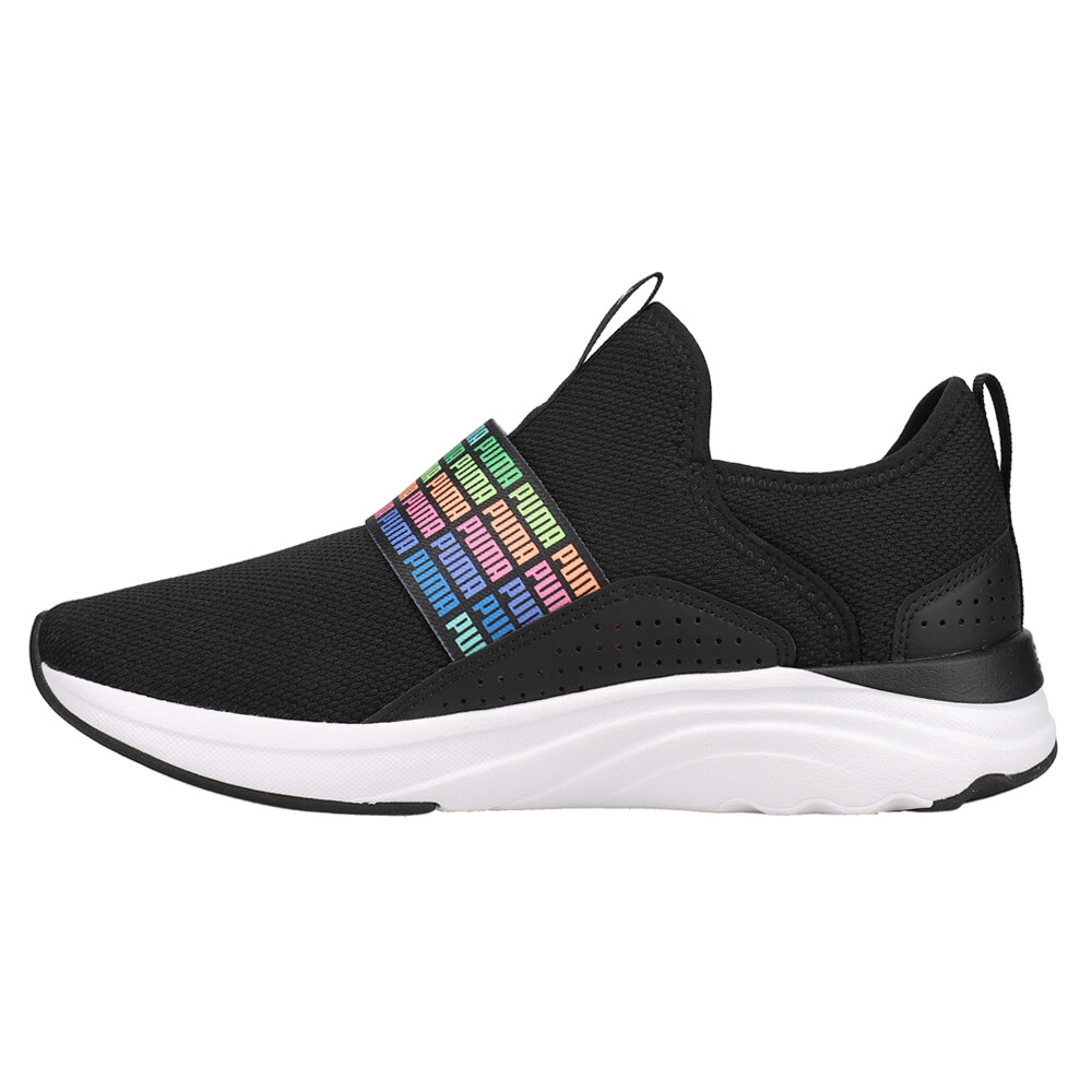 Softride Sophia Slip On Running Shoes (Big Kid) Product Details Textile upper Slip on closure Cushioned midsole Rubber outsole This style utilizes our plush and comfortable Softride foam and Softfoam+ footbed, ensuring all around comfort. Additional Details Color: Black Occasion: Casual Gender: Boys Age: Youth Brand: Puma